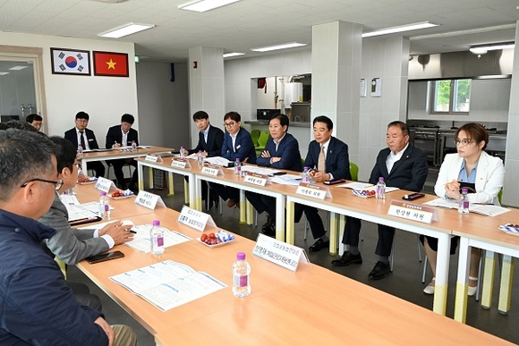 먼저 최 의장 일행은 기존 모텔을 군이 매입해 리모델링한 계절근로자 기숙사를 방문했다. 작년 4월 완공된 이 기숙사는 전국 최초 계절근로자 기숙사로 3층 규모로 2~4인용 생활공간 19실, 공동주방, 세탁실 등으로 구성돼 있다. 현재 계절근로자 42명이 기숙사에 입소해 만실로 운영 중일 만큼 깨끗하고 쾌적한 시설로 높은 만족도를 얻고 있다.