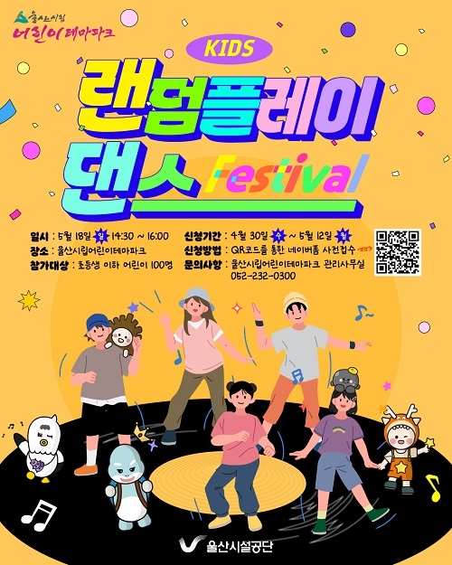 울산시설공단 울산시립어린이테마파크에서는 어린이들의 표현력과 자신감을 향상하고, 전 세대가 함께 즐길 수 있는 놀이문화 확산을 위해 내달 18일 키즈 랜덤플레이댄스 페스티벌을 개최한다고 29일 밝혔다.