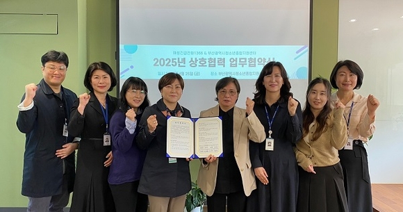 지난 4월 25일, 부산시청소년종합지원센터에서 부산시청소년종합지원센터 최선경 관장, 부산시일시청소년쉼터(고정형) 이혜영 소장, 부산시일시청소년쉼터(이동형) 김복희 소장, 부산시남자단기청소년쉼터 전선영 소장, 부산시청소년자립지원관(혼합형) 장주현 소장, 학교폭력예방회복조정센터 장은선 소장, 청소년성문화센터 정주비 소장과 여성긴급전화 1366 부산센터 배수경 센터장, 김영진 상담팀장, 안서연, 정혜원 상담원이 참석한 가운데 업무협약식이 진행됐다.