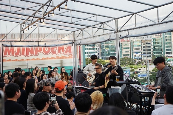 이번 공연은 지난 2일 삼진어묵이 운영하는 ‘삼진포차’가 벚꽃 시즌을 맞아 마련한 행사로, 장범준의 대표곡 ‘벚꽃 엔딩’에 걸맞은 감성을 자아냈다. 지난 공연과 마찬가지로 버스커버스커의 드러머 브래드가 함께 무대에 올라 뜨거운 호응을 이끌었다.