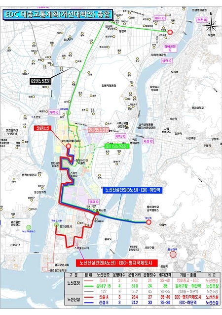 신설 노선은 ▲에코델타시티~명지새동네~국회도서관(28.2㎞) 구간과 ▲에코델타시티~강서경찰서~하단 구간으로, 배차 간격은 각각 30~35분, 30분이다.