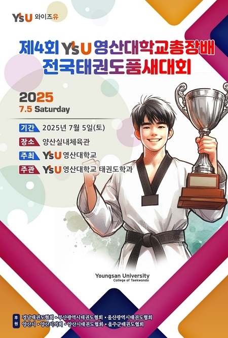 전국 태권도인이 품새 수련의 정수를 선보일 ‘제4회 Y’sU(와이즈유) 영산대학교총장배 전국태권도품새대회’가 오는 7월 경남 양산종합운동장 실내체육관에서 열린다.