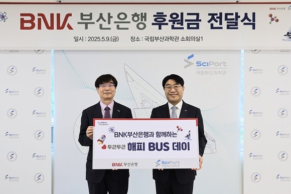 BNK부산은행은 과학관으로부터 먼 거리에 소재한 학교와 교육복지우선지원사업 대상 학교 학생들에게 단체 관람 교통비를 지원하는 ‘해피버스(BUS)데이’사업에 5천만원을 기부했다.