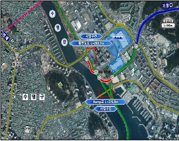 또한 원동 나들목(IC)에서 그린시티, 송정, 해운대 방향 통행 차량이 영화의전당 앞을 거치지 않고 평면도로(UNDER-PASS)를 통해 우동천교차로까지 이동할 수 있어 수영강변대로와 해운대로 일원의 교통혼잡이 줄어들 것으로 기대된다.