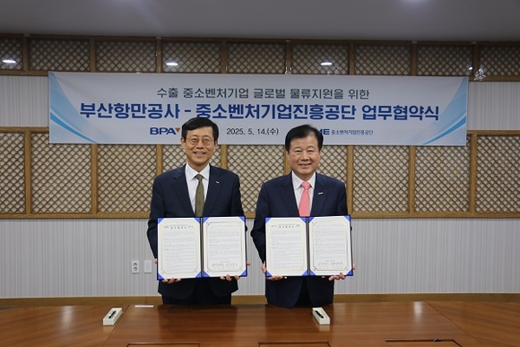 부산항만공사(BPA)가 14일 BPA 본사에서 중소벤처기업진흥공단(중진공)과 수출 중소기업의 해외 물류 지원을 위한 업무협약을 체결했다.