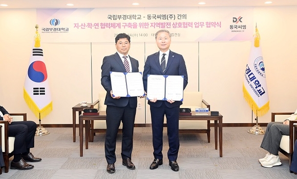국립부경대학교와 동국씨엠은 지난 14일 오후 국립부경대 대학본부 3층 접견실에서 상호 협력 협약을 체결했다고 15일 밝혔다.