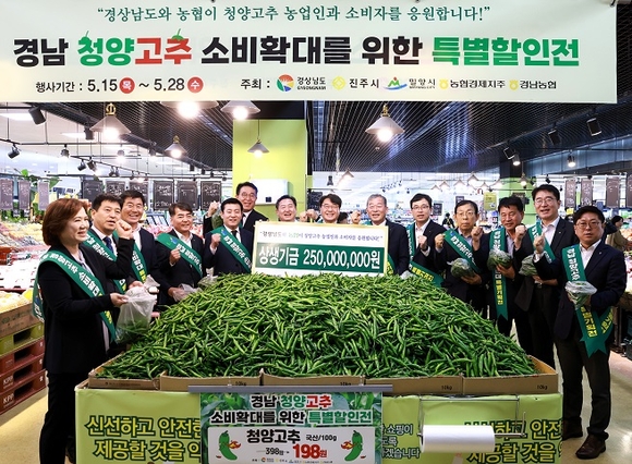 경남농협은 경남도, 진주시, 밀양시와 함께 15일부터 28일까지 2주간 전국 농협하나로마트를 대상으로 경남 청양고추 소비확대를 위한 특별할인전을 진행한다고 밝혔다. 행사 첫날인 15일에는 남창원농협 농수산물종합유통센터에서 개장식이 열려 본격적인 소비촉진의 시작을 알렸다.