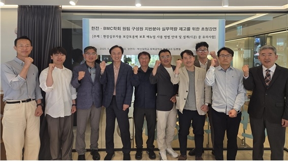 강연 후 진행된 업무협의에서는 부산도시공사, 한국전력공사, 대한토목학회 간 협업을 통해 점검이 필요한 보강토옹벽 대상 시설을 공동으로 선정하고, 향후 점검 일정 및 방법에 대한 의견을 교환했다.