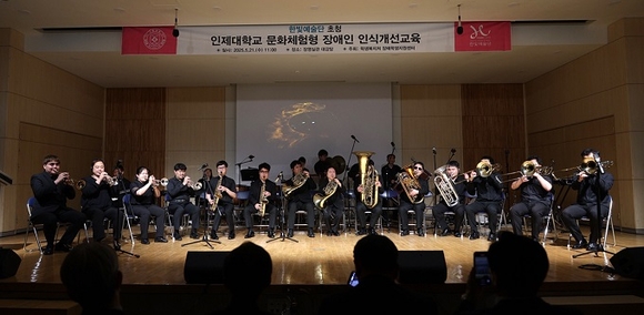 인제대학교는 21일 김해캠퍼스에서 시각장애인 전문 연주단체 한빛예술단을 초청해 ‘장애인식개선 문화체험형 교육’을 진행했다고 밝혔다. 단원들은 클래식과 영화음악 등 다채로운 곡을 선보이며, 장애를 넘어선 진정성 있는 무대로 큰 감동을 전했다.