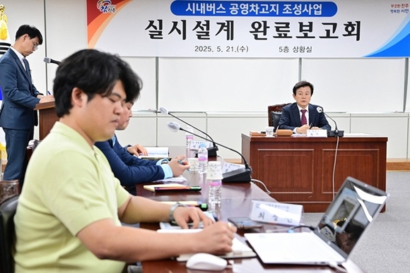 진주시는 지난 21일 시청 상황실에서 조규일 시장, 교통안전국장, 공공건축가, 설계용역사 등이 참석한 가운데 '시내버스 공영차고지 조성 실시설계 완료 보고회'를 열었다.