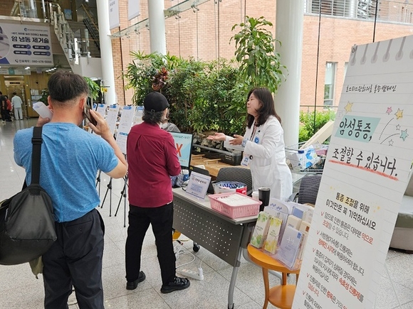 이번 행사는 환자 및 보호자, 내원객을 대상으로 말기 암 환자의 암성 통증 조절과 완화의료 서비스에 대한 인식을 높이기 위해 마련된 교육 캠페인으로, 통증에 대한 올바른 정보를 제공하고 환자와 가족이 겪는 고통에 효과적으로 대응할 수 있는 방법을 알리는 데 중점을 뒀다.
