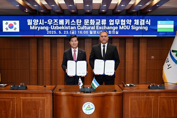 경남 밀양시는 23일 시청 소회의실에서 우즈베키스탄 문화부와 문화교류 업무협약을 체결했다고 밝혔다.