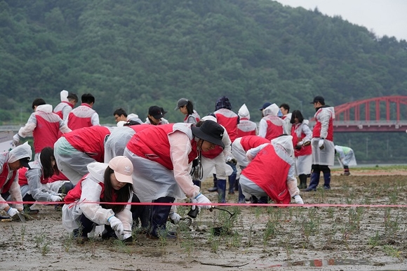 봉사자들은 본격적인 활동에 앞서 생태전문가로부터 칠면초 군락지 복원과 생태계 순환에 대한 설명을 듣고, 이후 간조 시간에 맞춰 봉암갯벌 인공섬 일대로 들어가 칠면초 모종과 씨앗을 심으며 구슬땀을 흘렸다.