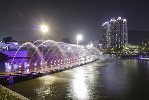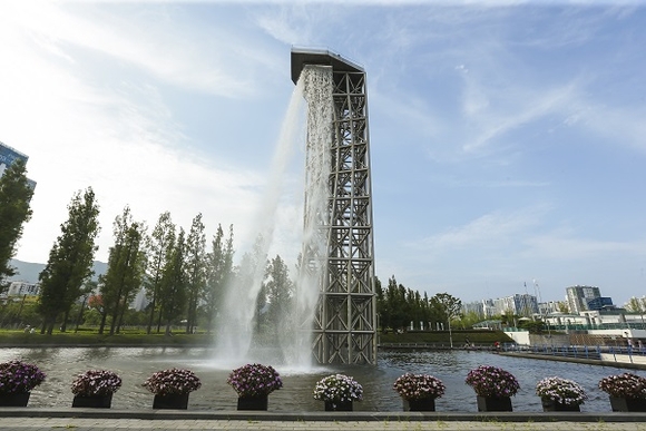 부산시민공원 하늘빛폭포 거울연못 야외분수대가 일찍 다가온 무더위를 식히기 위해 가동되고 있다.(사진=부산시설공단 제공)