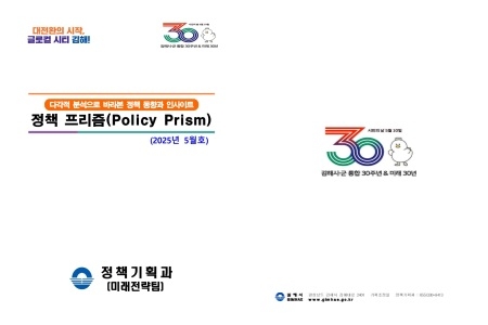 한경용 정책기획과장은 “정책프리즘은 단순한 정보 수집을 넘어 시정에 실질적으로 적용할 수 있는 정책정보와 분석 결과를 담아낸다는 점에서 의미 있다”며 “정책 담당자들이 효과적인 의사 결정을 할 수 있도록 앞으로도 시의 정책 현안과 연계한 다양한 정보를 지속적으로 제공하겠다”고 말했다.