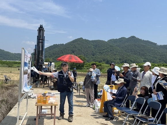 경남 합천군은 지난 26일 적중면 부수리 일원에서 한국지질자원연구원의 주최로 합천운석충돌구 지질증거 시추조사 현장설명회를 가졌다.