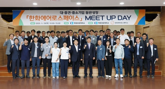 창원상공회의소는 29일 오전 창원상의 2층 대회의실에서 지역 대·중견·중소기업 간 상생협력과 지역산업 경쟁력 강화를 위한 소통의 장인 '한화에어로스페이스 MEET-UP DAY'를 성황리에 개최했다고 밝혔다.