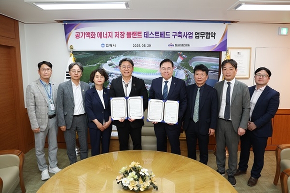 이를 위해 김해시는 29일 시청에서 한국기계연구원과 '공기액화 에너지 저장 플랜트 테스트베드 구축사업' 추진을 위한 업무협약을 체결했다.