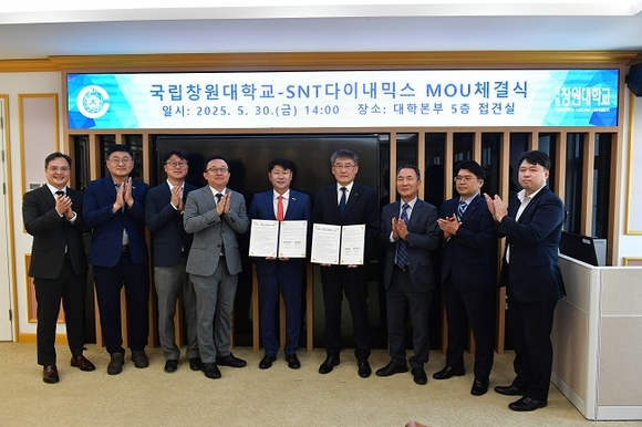 국립창원대학교와 SNT다이내믹스는 30일 국립창원대 대학본부에서 산학협력 업무협약을 체결했다고 밝혔다. 이번 협약은 양 기관이 보유한 전문성을 기반으로 방위산업 분야 전문인력 양성을 위한 유기적 협업체계를 구축해 산학협력을 강화하고, 인적·물적 자원 등의 교류협력을 도모하는 데 목적이 있다.