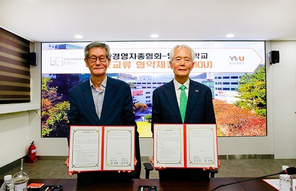 와이즈유 영산대학교가 지난 2일 오전 해운대캠퍼스에서 부산경영자총협회와 지역혁신을 도모하고 청년인재를 양성하는 협약을 체결했다고 5일 밝혔다.