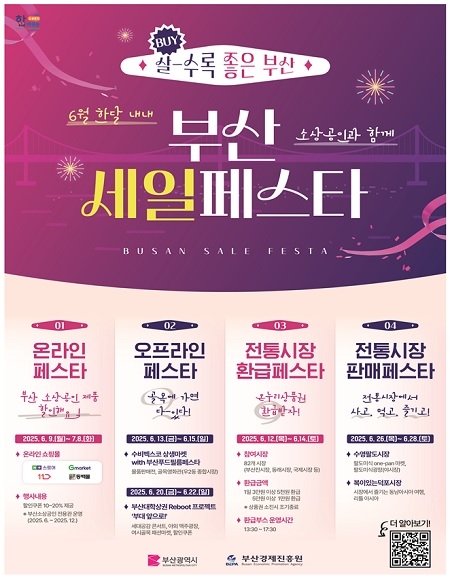 부산시가 6월 한 달간 지역경제 활성화를 위한 대규모 소비 진작 프로젝트인 ‘부산세일페스타’를 개최한다. 전통시장과 소상공인 매장은 물론, 대형 온라인몰까지 아우르는 통합 할인 행사로, 시는 올해 추가경정예산을 투입해 민생경제 회복에 나섰다.