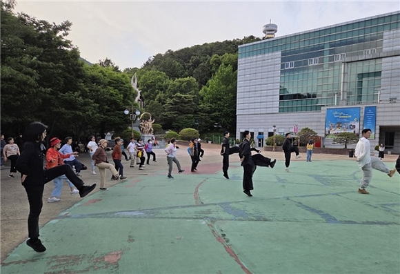 부산 도심 주요 공원에서 전통 국악을 활용한 생활체조 프로그램이 연이어 열리며 시민들의 큰 호응을 얻고 있다.