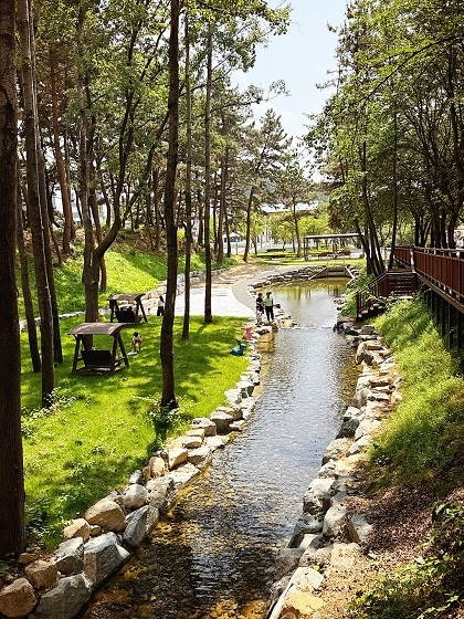 새롭게 조성된 국립창원대 사림공원 사림천에서 지역시민들이 휴식을 즐기고 있다.(사진=국립창원대 제공)
