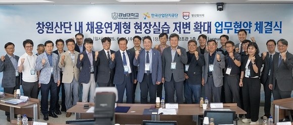 한국산업단지공단 경남지역본부는 11일 오후 경남대학교 창조관 AMP Lyceum실에서 경남대 및 방산협의체 함께 '창원국가산업단지 내 채용연계형 현장실습 저변 확대 사업'을 위한 업무협약을 체결했다고 밝혔다.