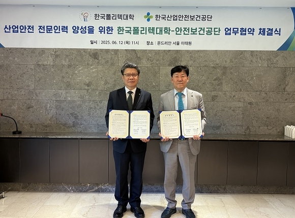 안전보건공단과 한국폴리텍대학이 12일 오전 예비산업인력 산업재해예방 강화를 위한 업무협약을 체결했다고 밝혔다.