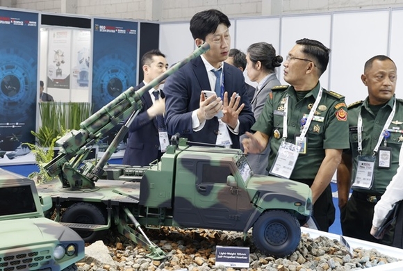 현대위아가 동남아시아 최대 규모의 방위산업 전시회에서 모빌리티 기반 화포체계를 선보였다.