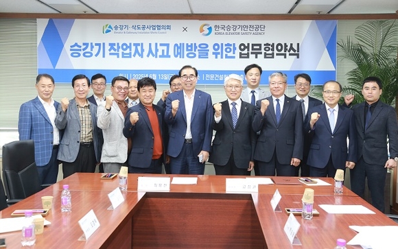한국승강기안전공단(KoELSA)이 승강기 작업자 사고 예방을 위해 대한전문건설협회 산하 승강기·삭도공사업협의회와 13일 업무협약을 체결했다고 밝혔다.
