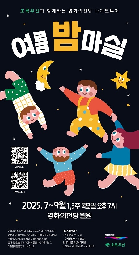 영화의전당이 오는 7월 3일부터 9월 18일까지 초록우산 어린이재단과 함께 야간투어 프로그램 ‘여름 밤마실’을 선보인다. 개관 이래 최초로 진행되는 이번 야간 프로그램은 시민들에게 특별한 여름밤의 문화체험을 제공하는 것을 목표로 한다.