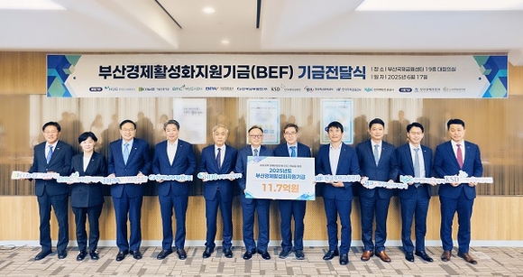 주택도시보증공사(HUG)를 포함한 부산지역 9개 공공기관이 조성한 ‘부산경제활성화지원기금(Busan ESG Fund, 이하 BEF)’이 올해도 지역경제에 활력을 불어넣는다. HUG는 17일 부산국제금융센터(BIFC)에서 BEF 전달식을 열고, 수탁기관인 (사)사회혁신연구원과 (재)부산경제진흥원에 총 11억7000만 원을 전달했다고 밝혔다.