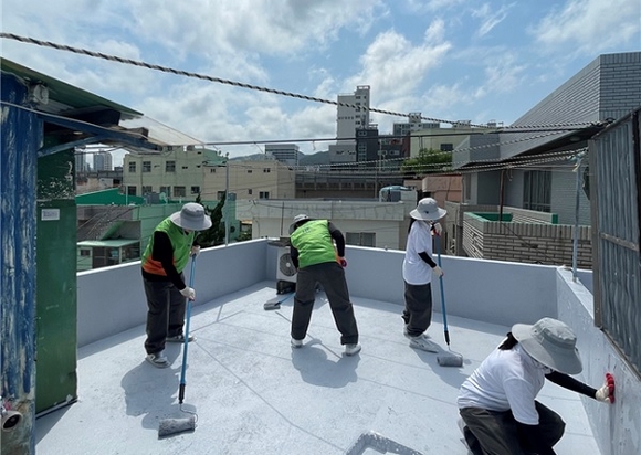 부산시 남구 문현동 일대에서 진행한 ‘쿨루프(Cool Roof) 도색 사회 공헌 활동’은 옥상에 태양열 차단 효과가 있는 특수 페인트를 칠해 실내온도를 낮추는 것으로 부산시자원봉사센터가 주거취약계층 어르신 21가구를 선정했으며, 주택금융공사 직원과 대학생 봉사단이 도색 작업을 함께 했다.