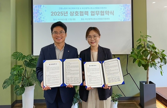 지난 17일 부산시청소년종합지원센터에서 최선경 관장과 고용노동부 민광제 부산북부지청장, 부산북부고용복지+센터 전황규 센터장, 그리고 양 기관의 주요 인사들이 참석한 가운데 업무협약식이 진행됐다.