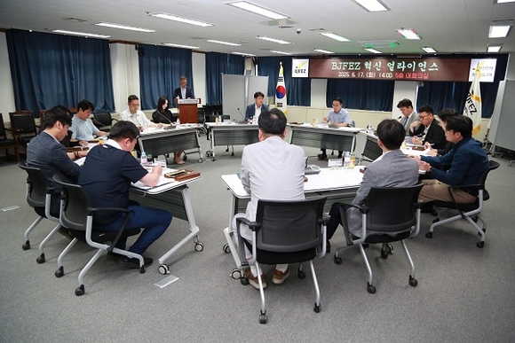 부산진해경제자유구역청이 지난 17일 경자청 대회의실에서 ‘제1회 BJFEZ 혁신 얼라이언스’를 개최하고 BJFEZ 핵심 전략산업 및 전략품목 육성에 본격 시동을 걸었다.