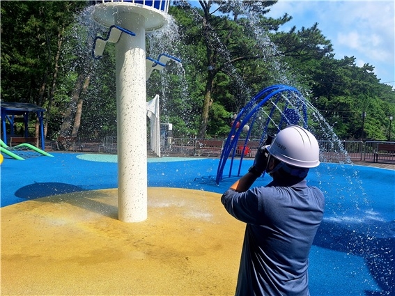 지난14일부터 18일까지 5일간 진행된 이번 사전점검에서는 키드키득파크와 광장 바닥분수 등 2개소 물놀이 시설의 기계설비, 용수공급 시스템, 바닥 상태, 전기설비, 안전장비 등 전반적인 운영 시스템을 체크했다.