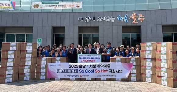 새울원자력본부는 19일 울주군 온양읍행정복지센터에서 온양읍지역사회보장협의체, 서생면지역사회보장협의체 및 울산공동모금회와 에너지 빈곤층 제로화를 위한 ‘소쿨소핫(so cool so hot)’ 고효율 에너지 물품 전달식을 가졌다고 밝혔다.