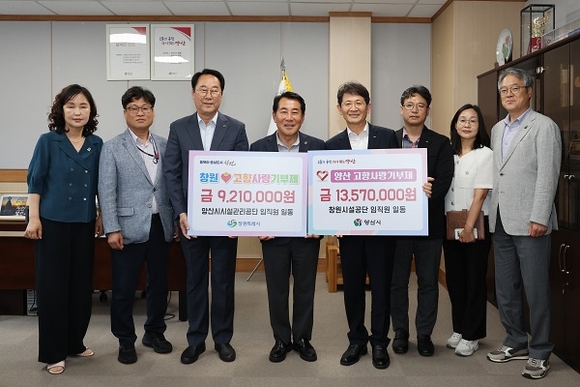 창원시설공단은 지난 19일 임직원 140명이 자발적으로 모금한 고향사랑 기부금 1천357만 원을 양산시에 기부했다고 20일 밝혔다.
