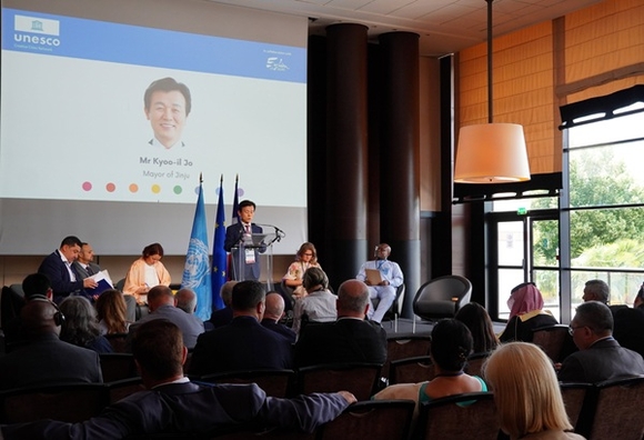 23일 첫날 진행된 시장 포럼 세션에서 조규일 진주시장은 '몬디아컬트(MONDIACULT) 2022 선언과 브라가 선언을 문화정책에서 실현하기 위한 진주시의 노력'을 주제로 직접 영어 발표를 진행하며, 유네스코 창의도시로서 진주시가 실천해온 다양한 정책과 사례를 소개했다.