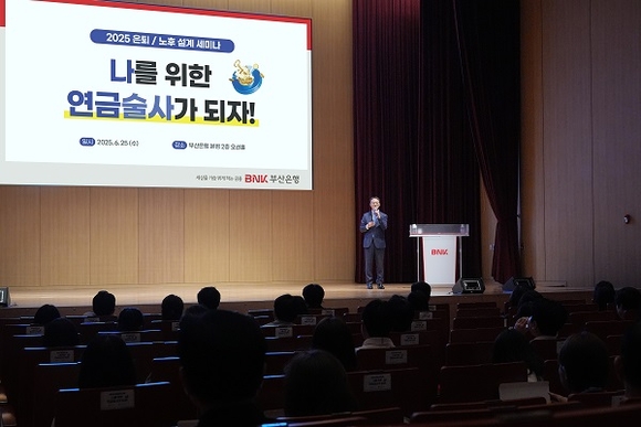 BNK부산은행이 25일 본점 오션홀에서 직장인 100명을 초청해 ‘나를 위한 연금술사가 되자’를 주제로 은퇴·노후 설계 세미나를 개최했다고 밝혔다.