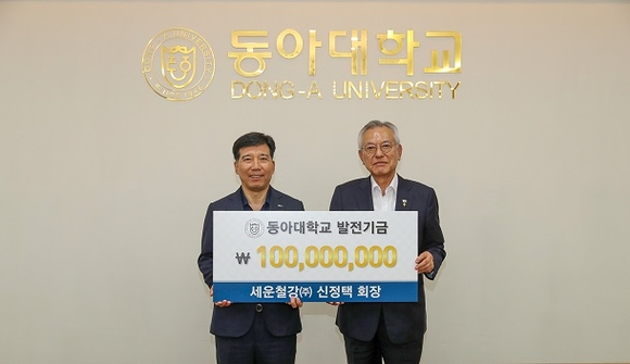 동아대학교는 신정택 총동문회장(세운철강㈜ 회장)이 학교 발전기금 1억 원을 기부했다고 26일 밝혔다.