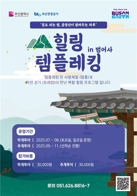 부산관광공사가 사찰 탐방과 등산을 결합한 체험형 관광상품 ‘범어사 힐링 템플레킹(Temple+Trekking)’을 7월부터 11월까지 운영한다고 밝혔다.