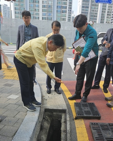 이번 점검은 집중강우로 인한 도시침수 피해를 사전에 예방하기 위한 것으로, 하수관로와 빗물받이 청소 및 준설 실태, 맨홀 추락방지시설 설치 상황 등을 집중 점검했다.