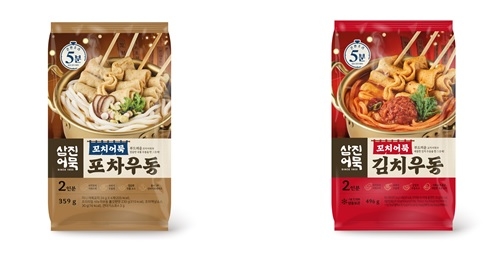삼진어묵이 포장마차에서 즐겨 먹는 꼬치 어묵과 우동을 집에서도 간편하게 즐길 수 있도록 할 ‘꼬치 어묵 포차 우동’ 2종을 출시했다.