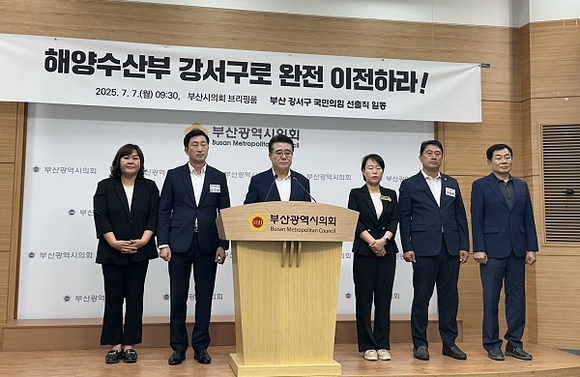 해양수산부의 부산 이전이 본격적인 논의에 들어간 가운데, 부산 강서구 선출직 국민의힘 의원들이 7일 오전 부산시의회 브리핑룸에서 기자회견을 열고 “강서구가 해양수산부 부산 이전의 최적지”라고 주장하고 나섰다.