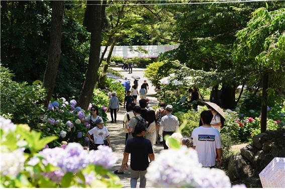 한편, 수국 군락지를 배경으로 한 포토존과 감성 가랜더로 꾸며진 ‘추억마당’은 관람객들에게 잊지 못할 여름의 한 장면을 선사한다. 축제장 곳곳은 사진을 찍고 추억을 남기려는 방문객들로 북적이며 활기를 띠고 있다.
