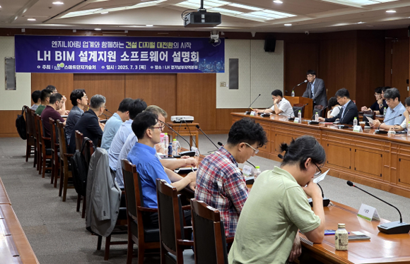 앞서 지난 3일 LH는 경기남부지역본부에서 민간 설계사 관계자 등 50여 명을 대상으로 설명회를 개최했다. 설명회에서 LH는 개발 소프트웨어 기능 시연과 더불어 BIM 도입 확대에 대한 업계의 다양한 의견을 청취하는 시간을 가졌다.