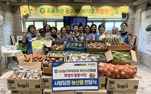 부산농협은 (사)농가주부모임 부산시연합회와 8일 부산 동구 소재 초록우산어린이재단 부산종합사회복지관에서 ‘사랑담은 농산물 전달식’을 가졌다고 밝혔다.