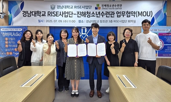경남대학교 RISE사업단은 9일 창조관 RISE사업단 회의실에서 진해청소년수련관과 청소년 성장 지원과 지역사회 문제해결을 위한 업무협약을 맺었다고 밝혔다.